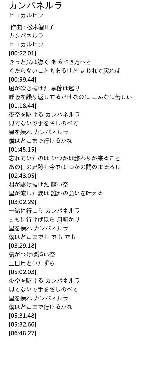 | [05:05.14] | 夜空を駆ける カンパネルラ |