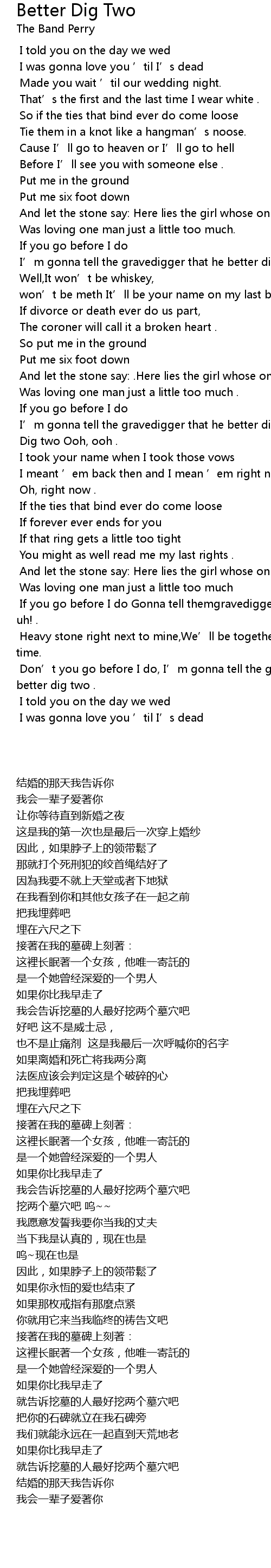 | [02:36.899] | 如果你比我早走了 就告诉挖墓的人最好挖两个墓穴吧 |