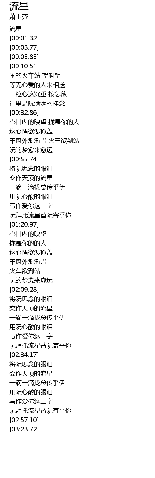 | [02:29.83] | 阮拜托流星替阮寄乎你 |