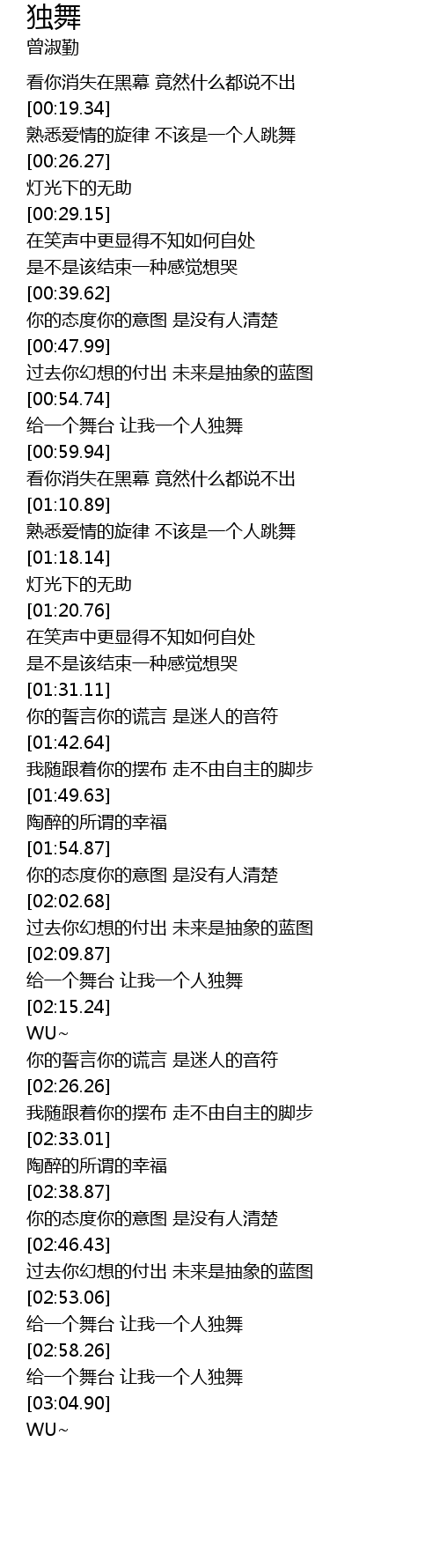 | [00:55.43] | 给一个舞台 让我一个人独舞 |