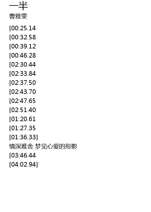 | [03:53.39][03:46.44] | 一半的不甘 一半的心痛 |