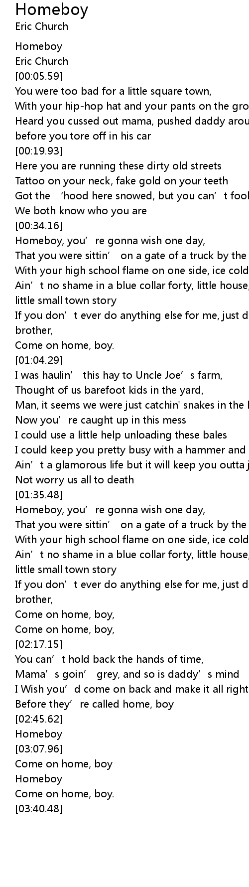 | [00:47.44] | Ain’t no shame in a blue collar forty, little house, little kid, little small town story |