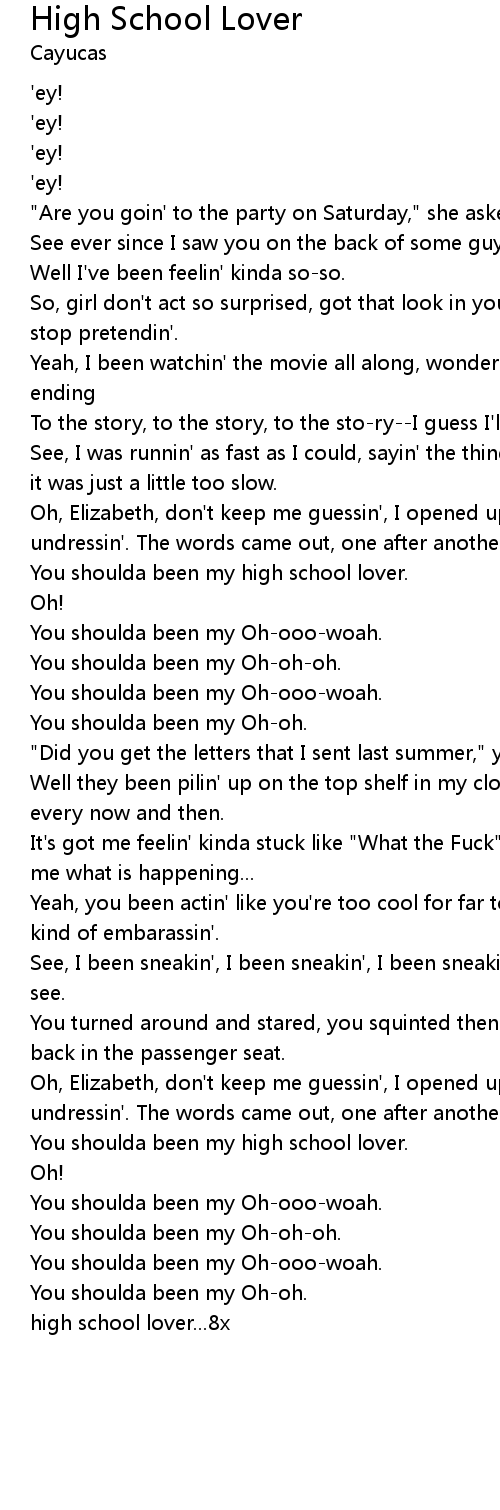 | Oh, Elizabeth, don't keep me guessin', I opened up the door and saw you undressin'. The words came out, one after another. | |