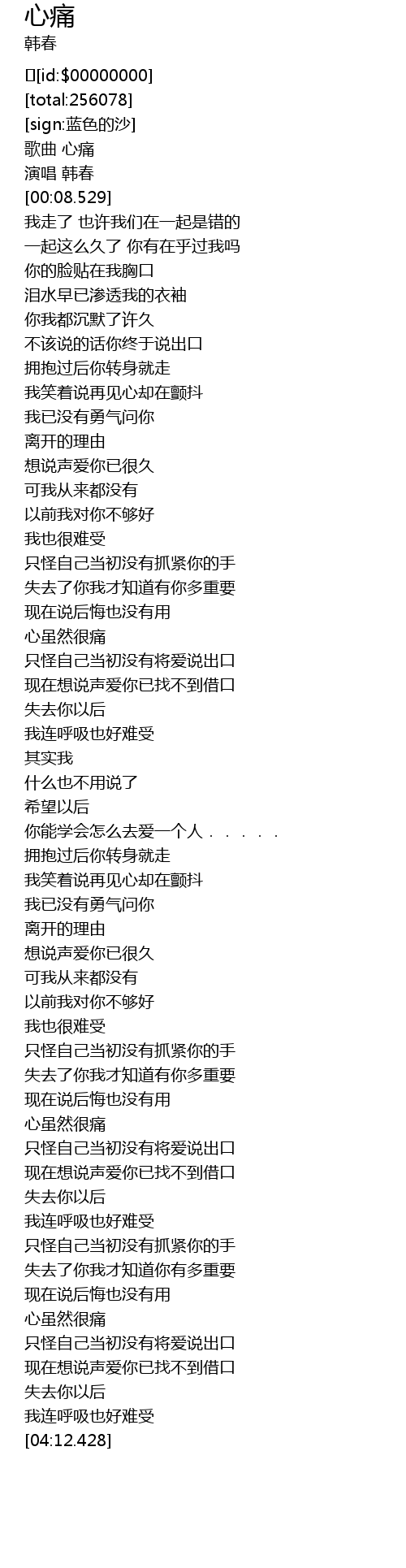 | [00:01.439] | 歌曲 心痛 |