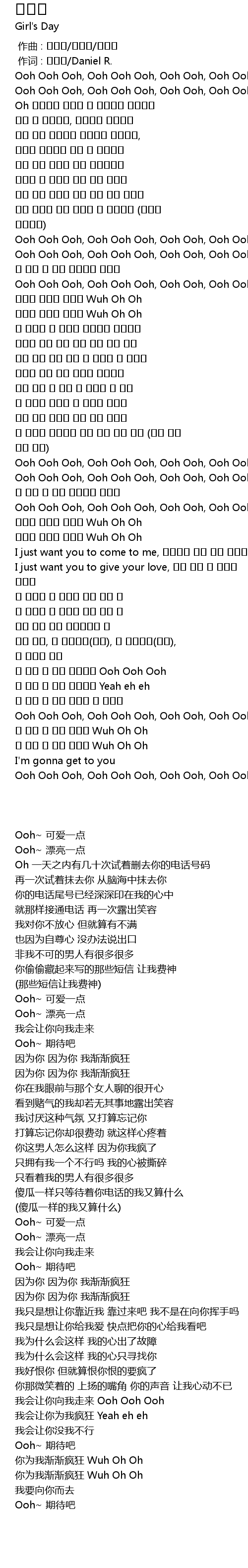 | [02:54.700] | 넌 내게 넌 내게 미쳐가 Wuh Oh Oh |