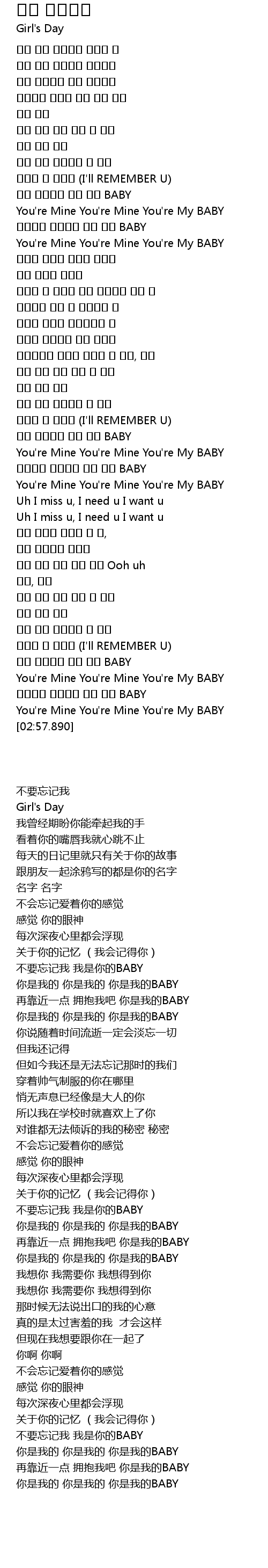 | [02:43.48] | 不要忘记我 我是你的BABY |
