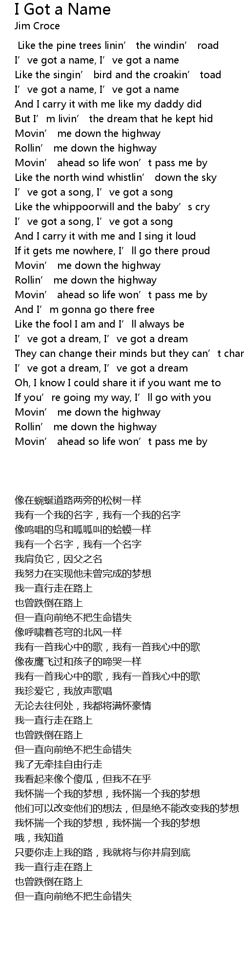 | 歌曲 | I Got a Name |