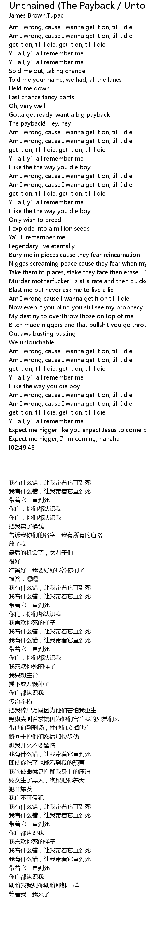 | [01:38.61] | 黑鬼尖叫着求饶因为他们害怕我的兄弟们来 |