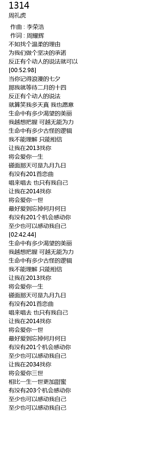 | [03:41.25] | ràng wǒ zài 2014 zhǎo nǐ |