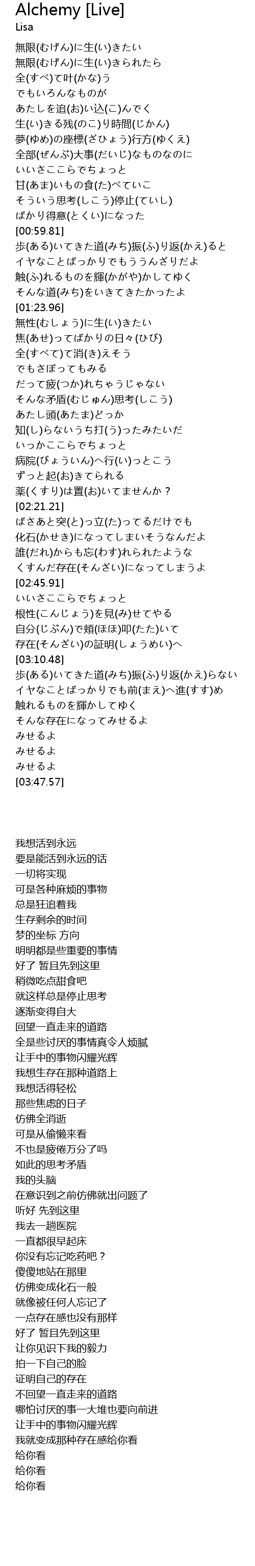 | [00:13.77] | 無限(むげん)に生(い)きたい |