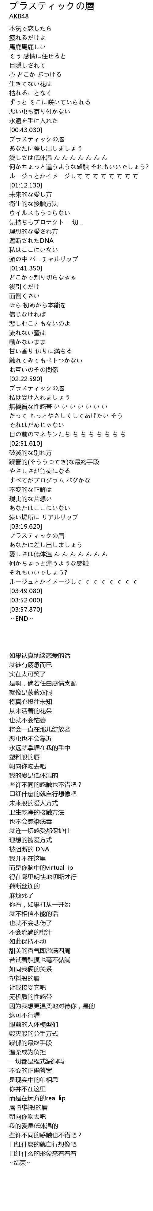 | [00:44.030] | 塑料般的唇 |