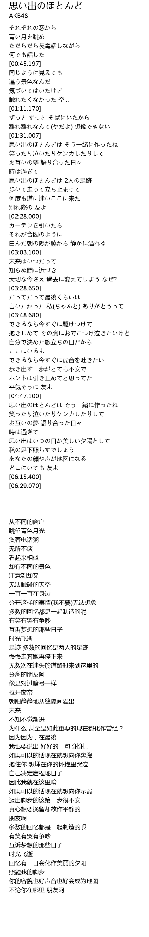 | [01:59.290] | 思い出のほとんどは 2人の足跡 |