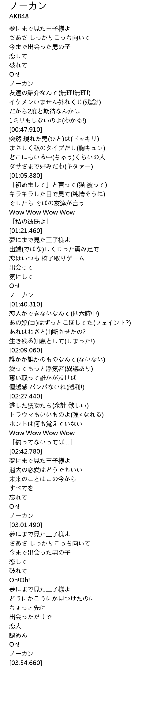 | [01:54.470] | 恋人ができないなんて(四六時中) |