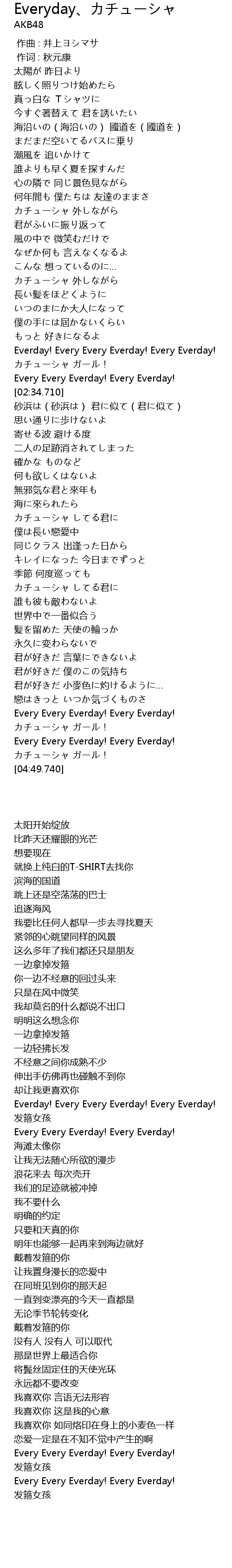 | [04:43.740] | Every Every Everday! Every Everday! |
