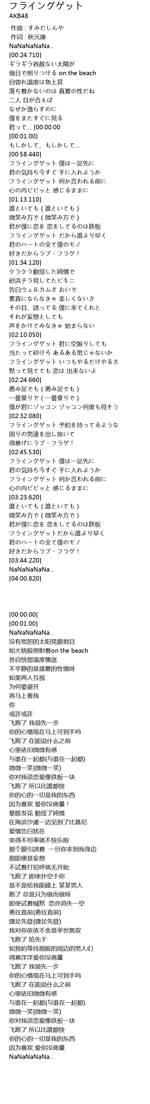 | [00:59.160] | フライングゲット 僕は一足先に |