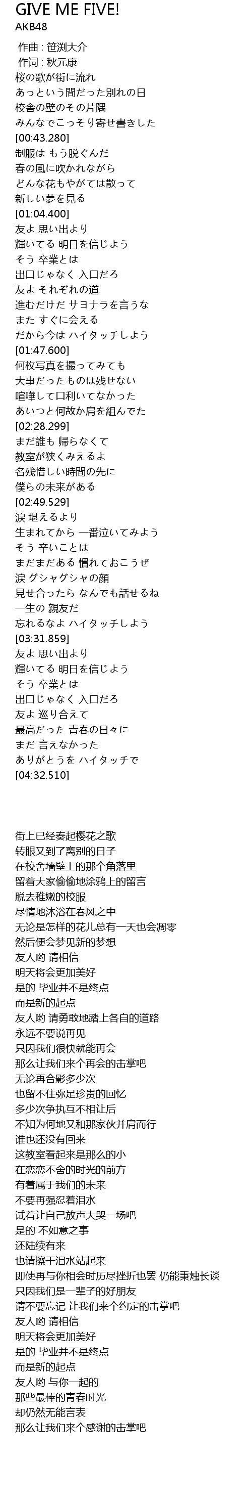 | [04:26.320] | ありがとうを ハイタッチで |