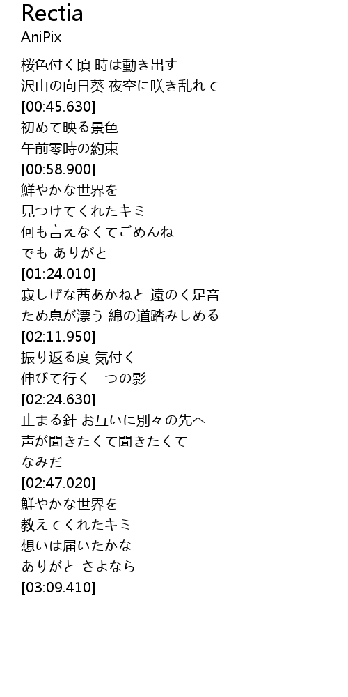 | [02:26.950] | 止まる針 お互いに別々の先へ |
