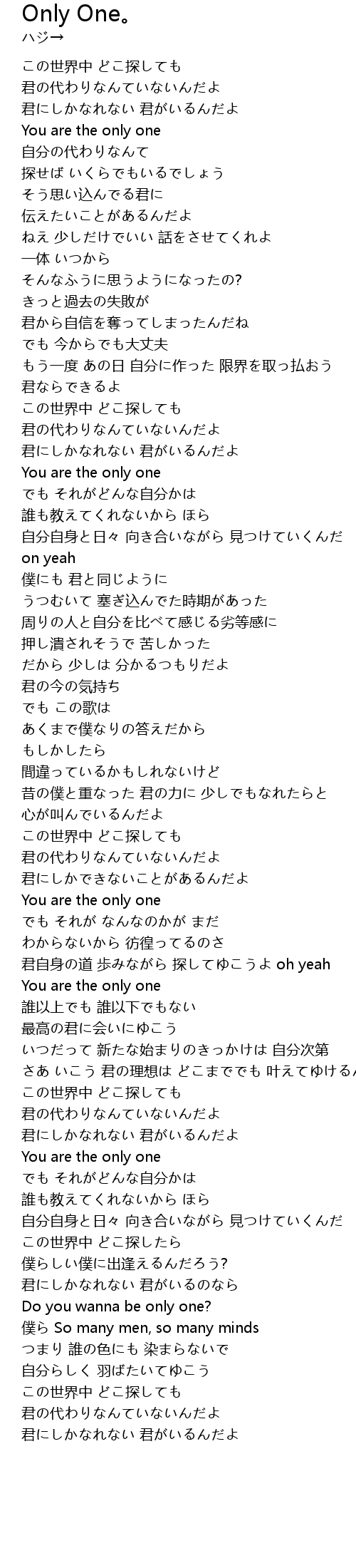 | 君自身の道 歩みながら 探してゆこうよ oh yeah | |