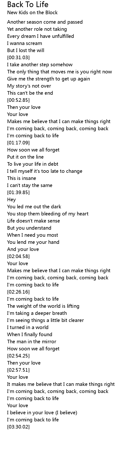 Back To Life 歌词