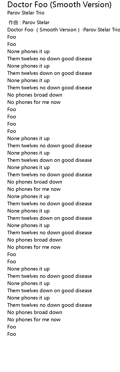 | 歌曲 | Doctor Foo (Smooth Version) |