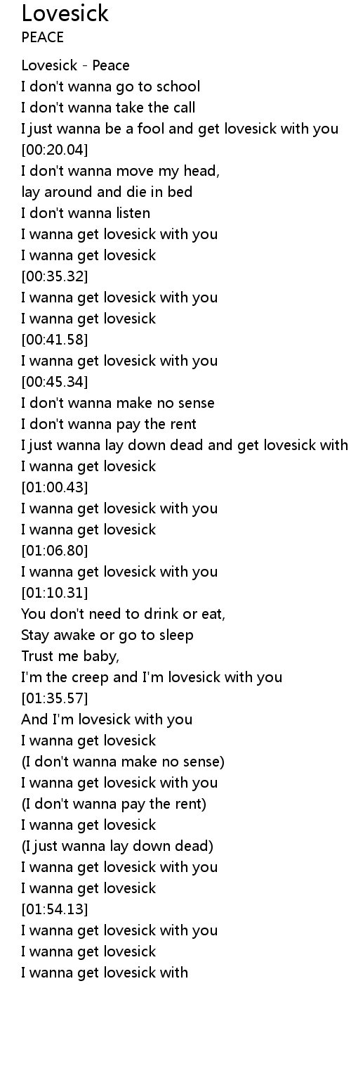 | [00:52.56] | I just wanna lay down dead and get lovesick with you |