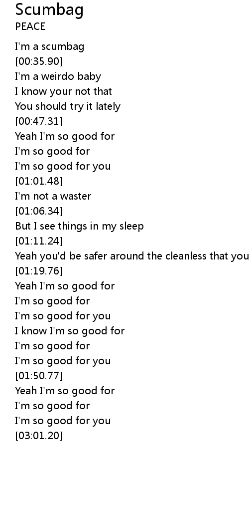 | [01:12.04] | Yeah you'd be safer around the cleanless that you keep |