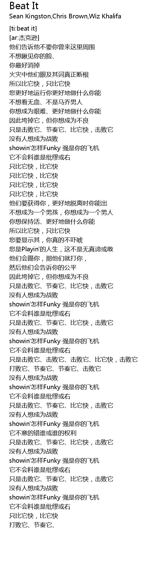 | [02:18.723] | 只是击败它、节奏它、比它快,击败它 |