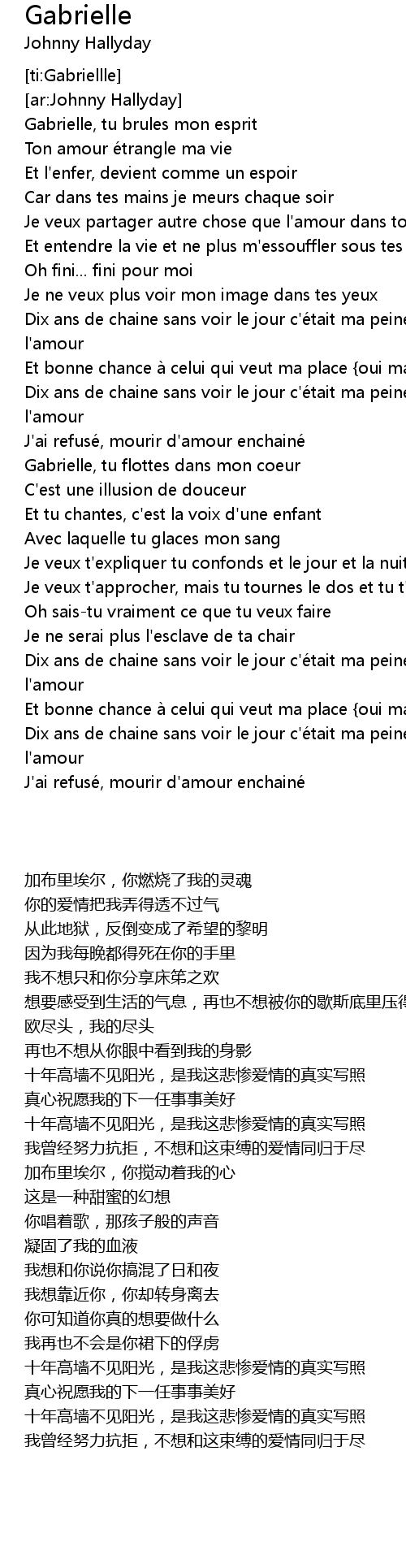 | [01:21.330] | Gabrielle, tu flottes dans mon coeur |