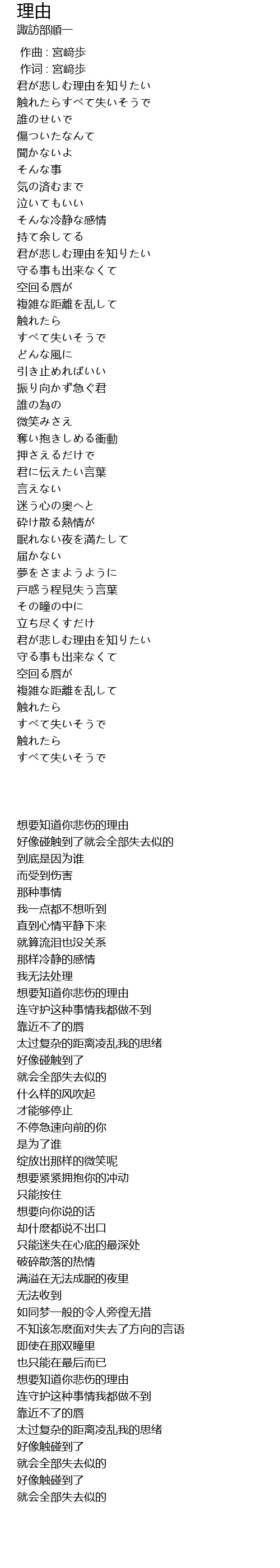 | [00:56.75] | 君が悲しむ理由を知りたい |