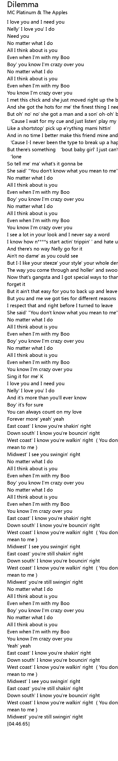 | [02:45.20] | Nelly' I love you' I do |