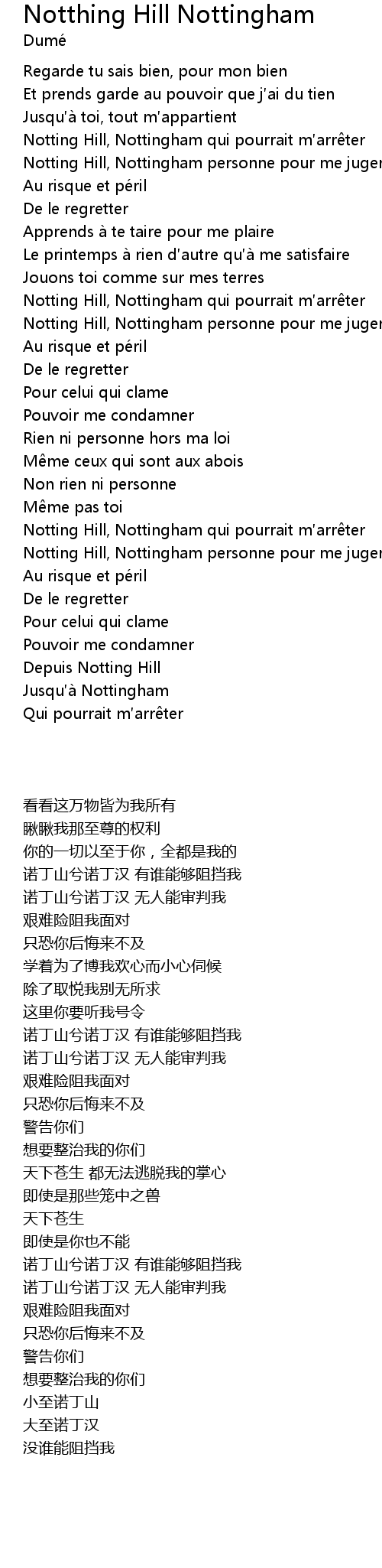 | [01:34.13] | 诺丁山兮诺丁汉 无人能审判我 |