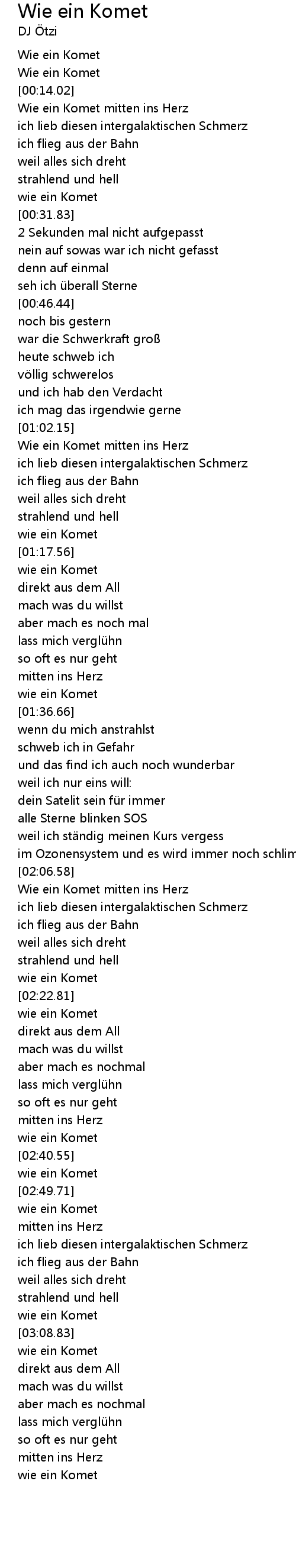 | [00:01.44] | Wie ein Komet |