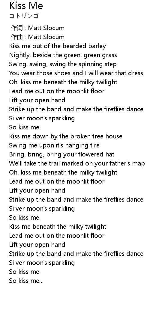 | [01:57.85] | Kiss me beneath the milky twilight |