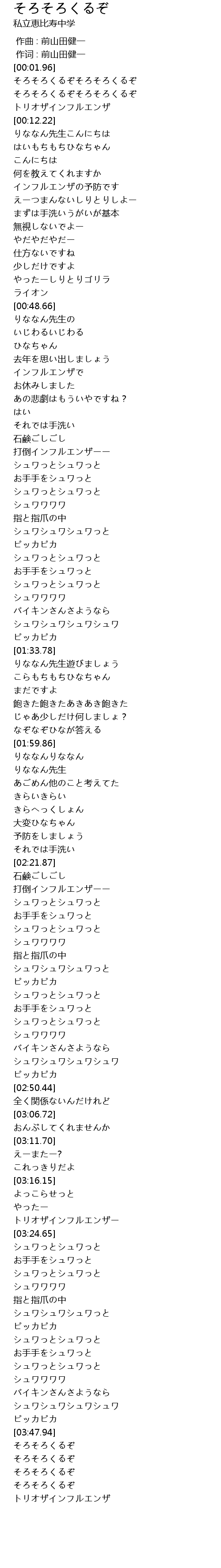 | [00:02.76] | そろそろくるぞそろそろくるぞ |
