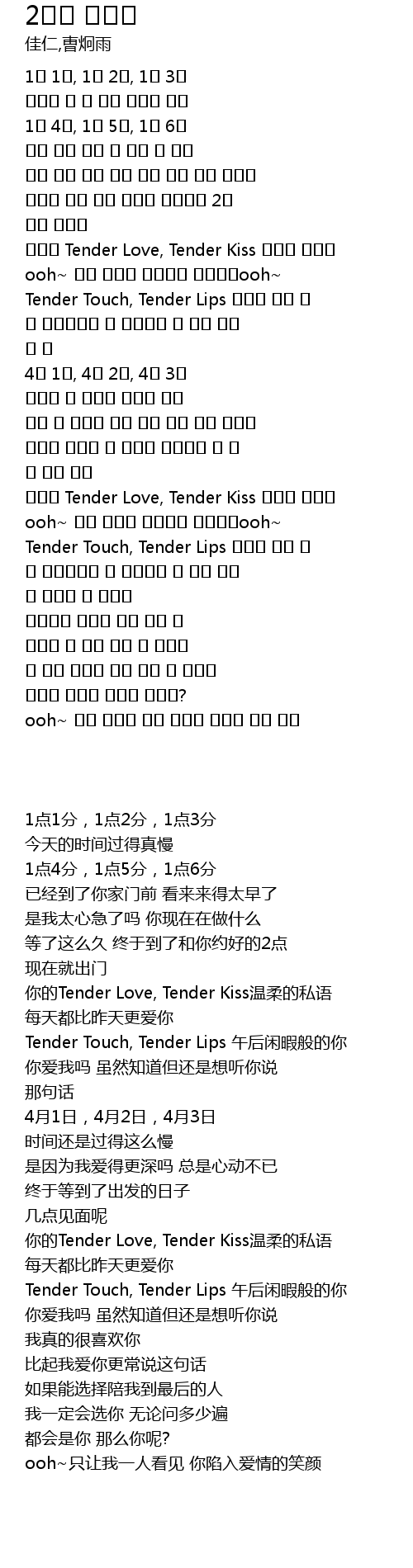 | [02:02.06] | 그대의 Tender Love, Tender Kiss 부드런 속삭임 |