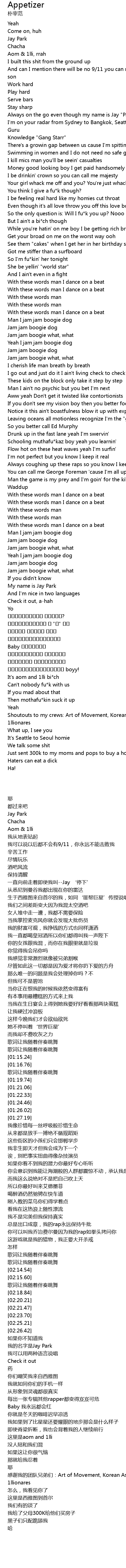 | [00:18.17] | Always on the go even though my name is Jay "Park" |