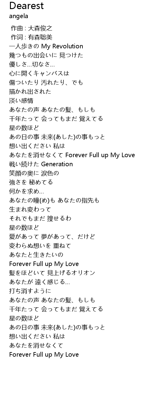 | [01:37.36] | あなたを消せなくて Forever Full up My Love |