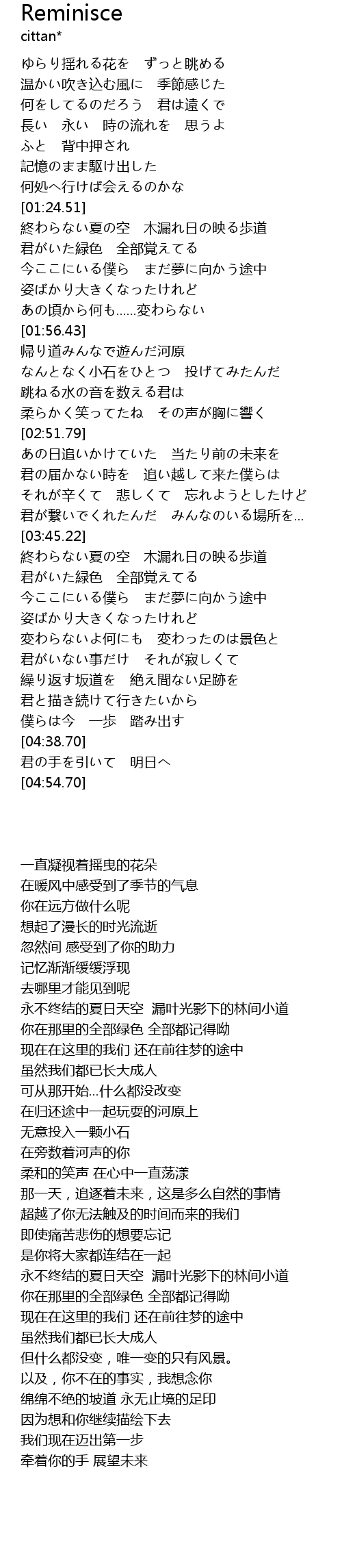 | [02:09.81] | 帰り道みんなで遊んだ河原 |