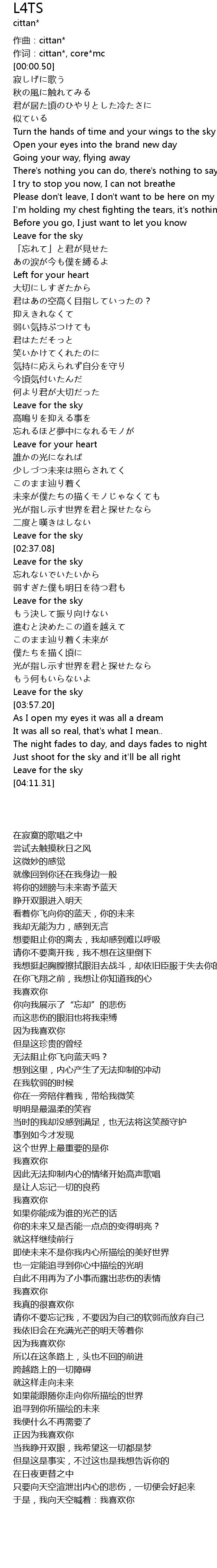 | [00:41.21] | Leave for the sky |