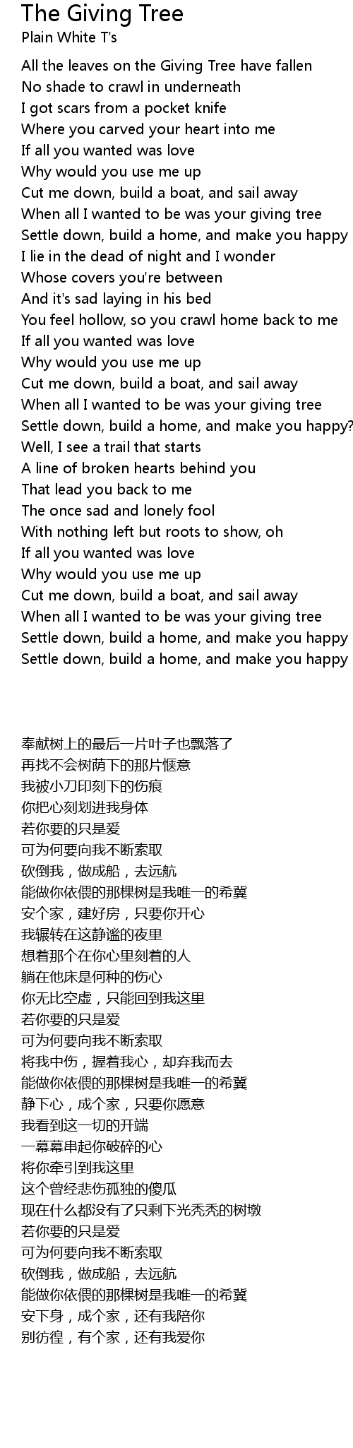 When all I wanted to be was your giving tree |