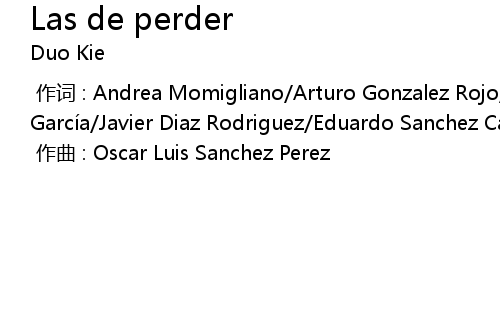 | [00:00.000] | 作词 : Andrea Momigliano/Arturo Gonzalez Rojo/Saturnino Rey García/Javier Diaz Rodriguez/Eduardo Sanchez Castellano/Elan Swan Fernandez |