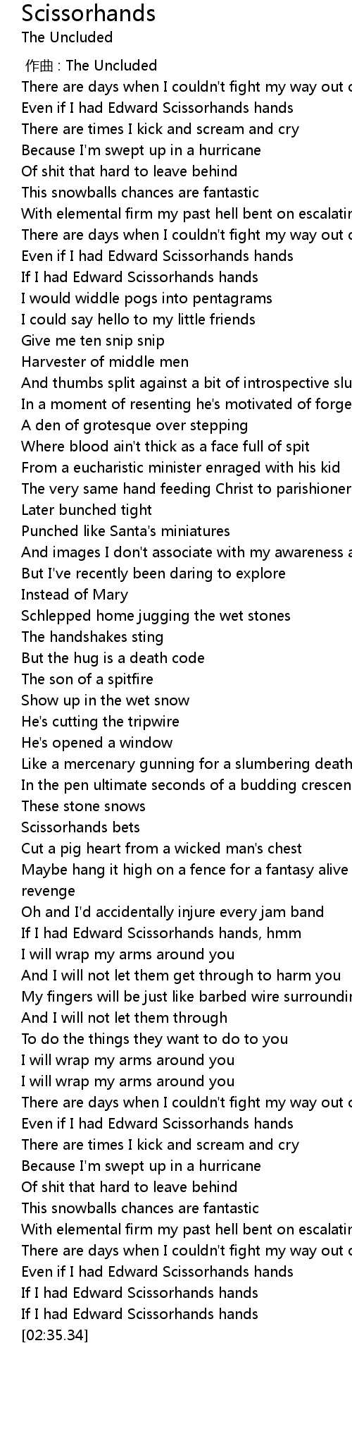 | [02:23.48] | If I had Edward Scissorhands hands |