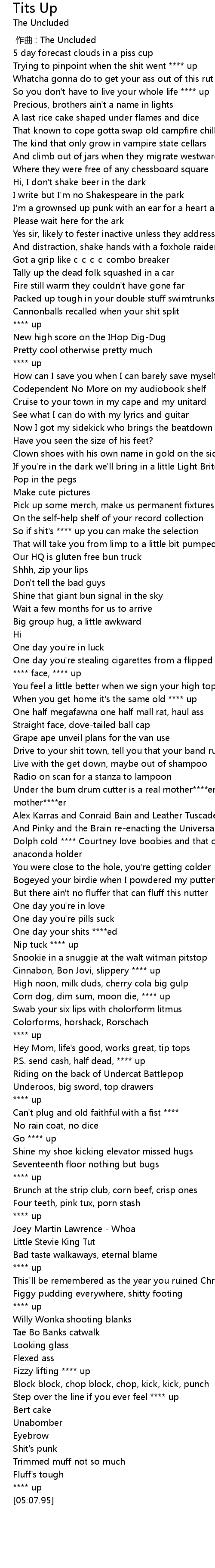 | [02:48.06] | Dolph cold **** Courtney love boobies and that over the shoulder anaconda holder |
