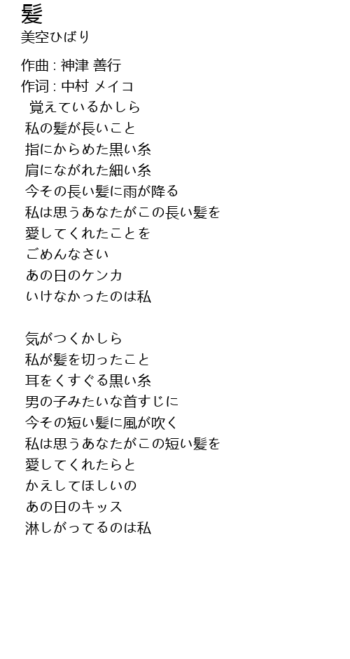 | 歌曲 | 髪 |