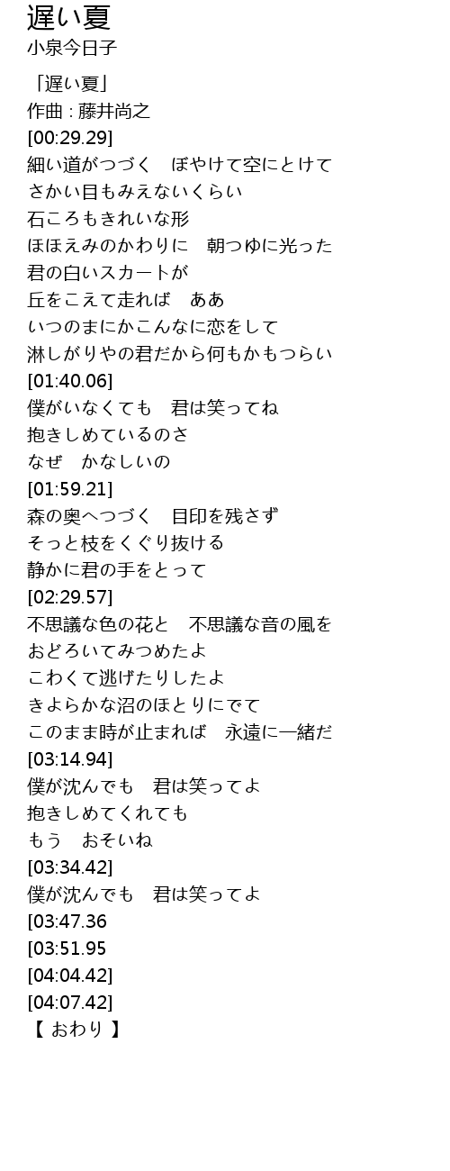 | [00:01.29] | 「遅い夏」 |