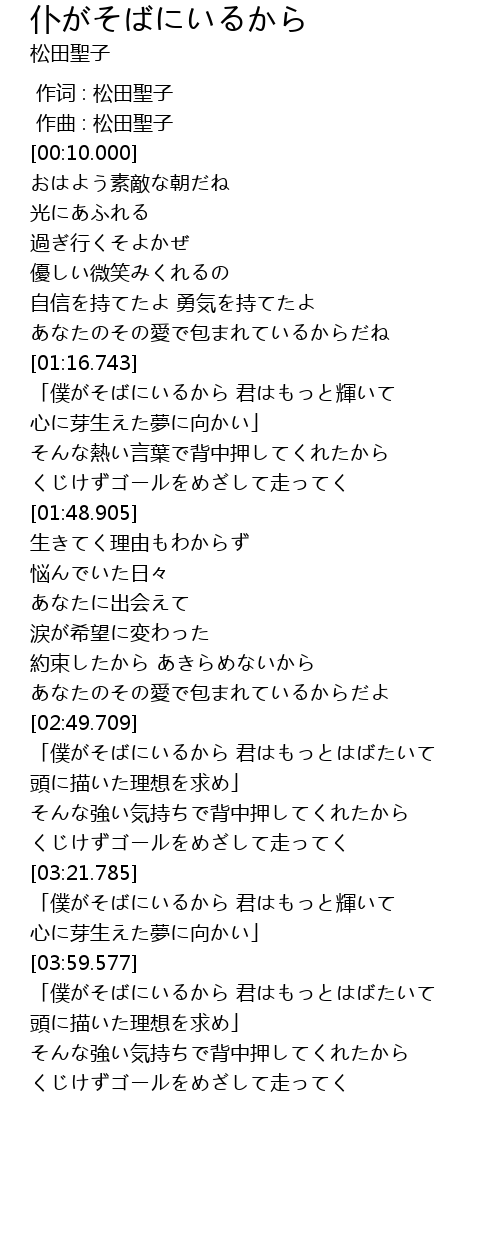 | [00:01.000] | 作曲 : 松田聖子 |