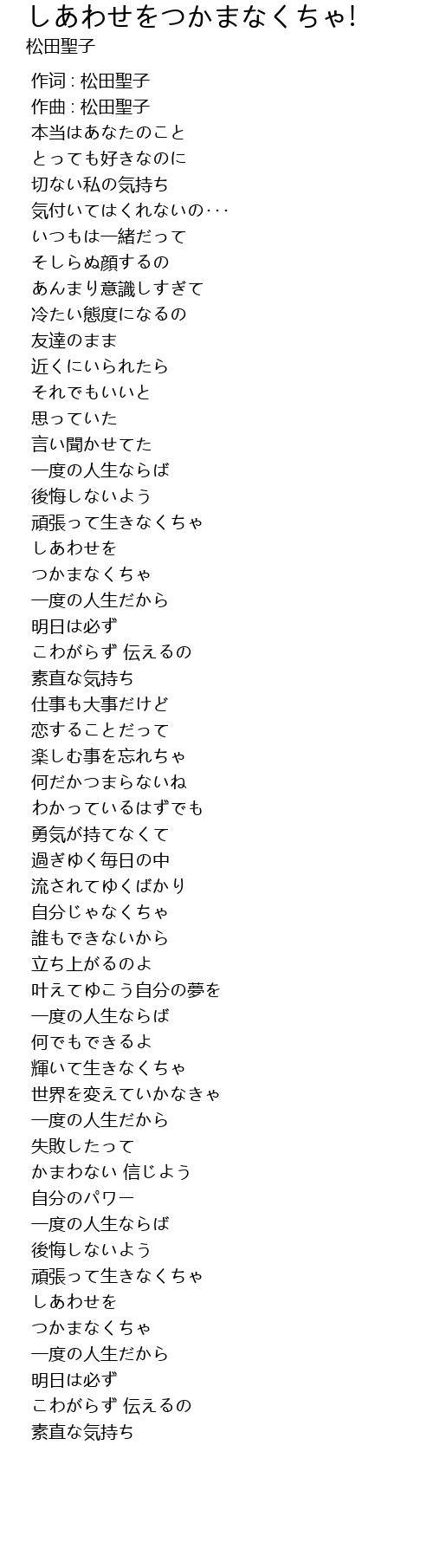 | [00:00.000] | 作词 : 松田聖子 |
