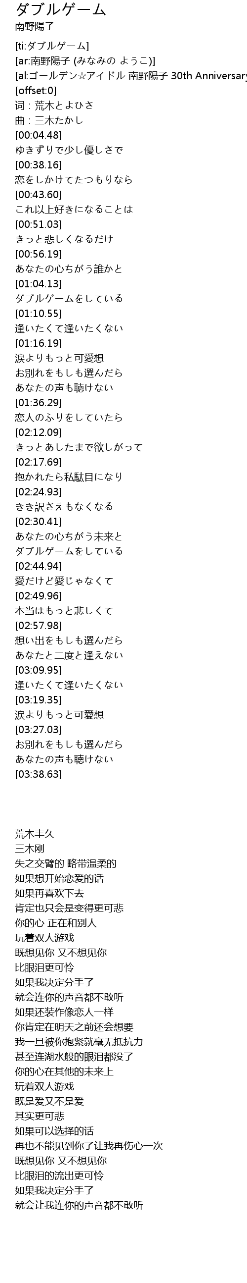 | [00:38.96] | 恋をしかけてたつもりなら |