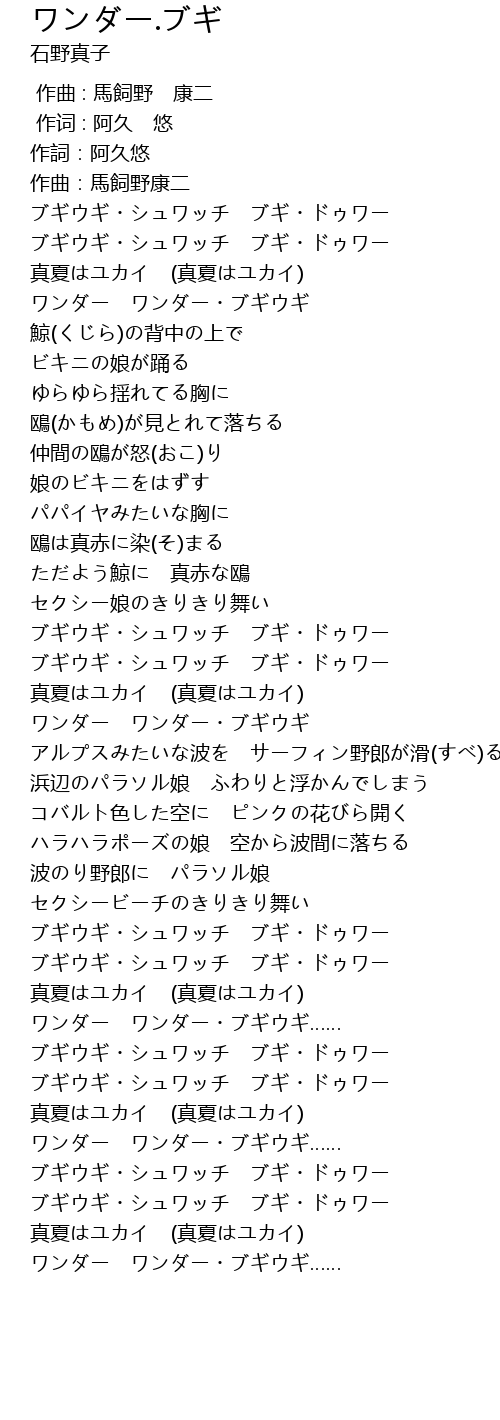 | [00:17.08] | ワンダー ワンダー・ブギウギ |