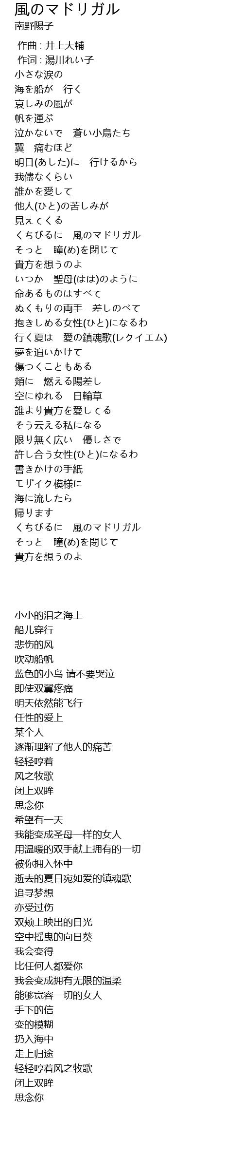 | 歌曲 | 風のマドリガル |